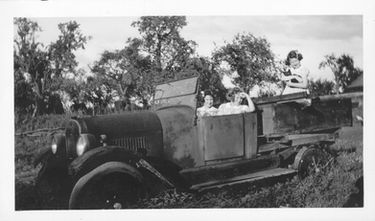 Brenda also remembered a young man and a girl around their age, who she thought had been the Pitcher son and daughter. She was also quite sure that the Pitchers were related in some distant way to her father’s family, the Youngs. Her photos show Owen and Rene Matthews (nee Young) at the farm, too. However, I have searched and searched Ancestry – both our extensive family tree and a number of family trees containing Ernest Pitcher – and I just can’t find the link. It must have been a distant link through marriage somewhere, maybe. I’ll keep looking. I also don’t see any children of the Pitchers in any tree, unless they are private.